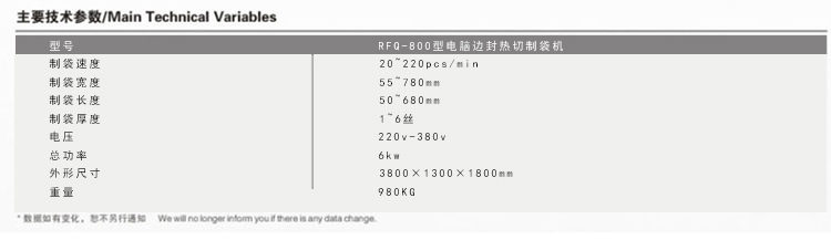 適用于PE、PP、OPP、BOPP、OPF等塑料材料自動熱切制作的針織、服裝、食品、文具等包裝,是目前替代進口同類產(chǎn)品的先進制袋設(shè)備。